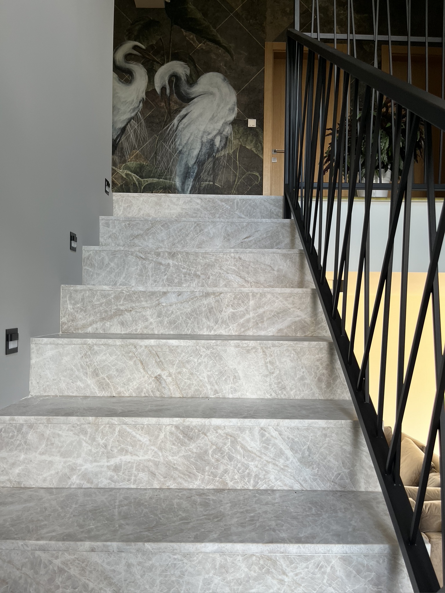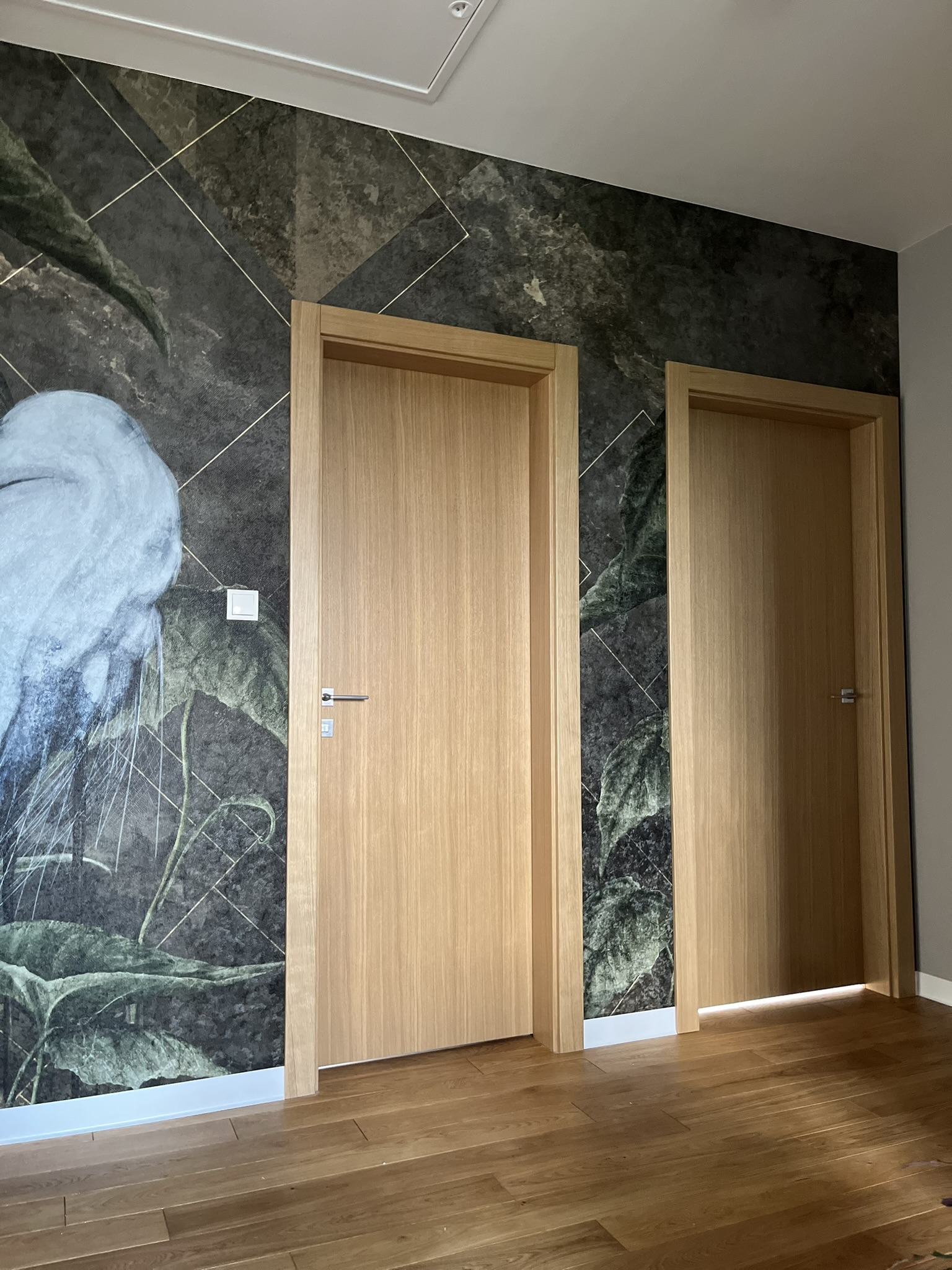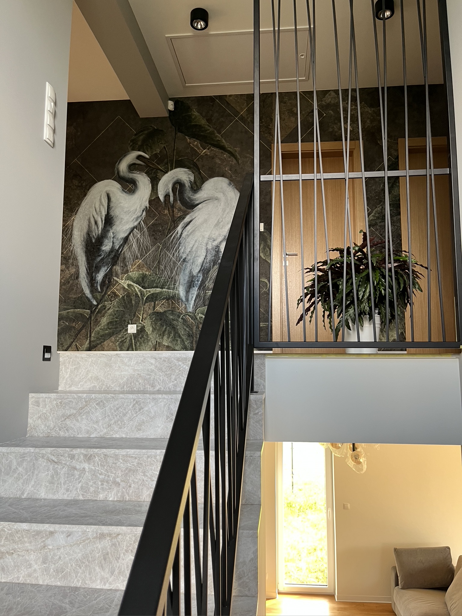 W jednym z domów pod Warszawą mieliśmy okazję przeprowadzić kompleksowe prace wykończeniowe, nadając wnętrzom niepowtarzalny charakter. Kluczowym elementem tej realizacji było połączenie naturalnych materiałów z nowoczesnym designem, co pozwoliło stworzyć przestrzeń elegancką, a jednocześnie przytulną. Wyróżniające się detale, takie jak efektowne tapety z motywami natury, stylowe schody i starannie dobrane oświetlenie, dodają wnętrzu wyjątkowego klimatu. Praktyczne rozwiązania, jak funkcjonalna kuchnia i ergonomiczne układy pomieszczeń, zapewniają wygodę mieszkańcom. Zachęcamy do zapoznania się z efektami naszej pracy – poniżej znajdziesz zdjęcia tej wyjątkowej realizacji!